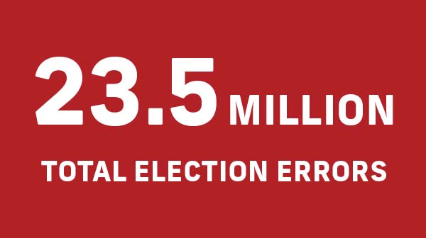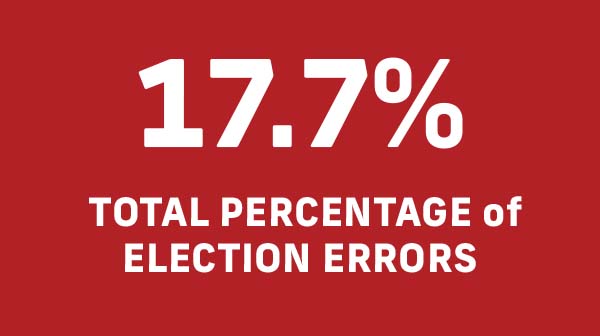 The total percentage of errors across 35 states clearly demonstrates that the election system in our country is returning inaccurate results that cannot be trusted—a fraud on the American people.