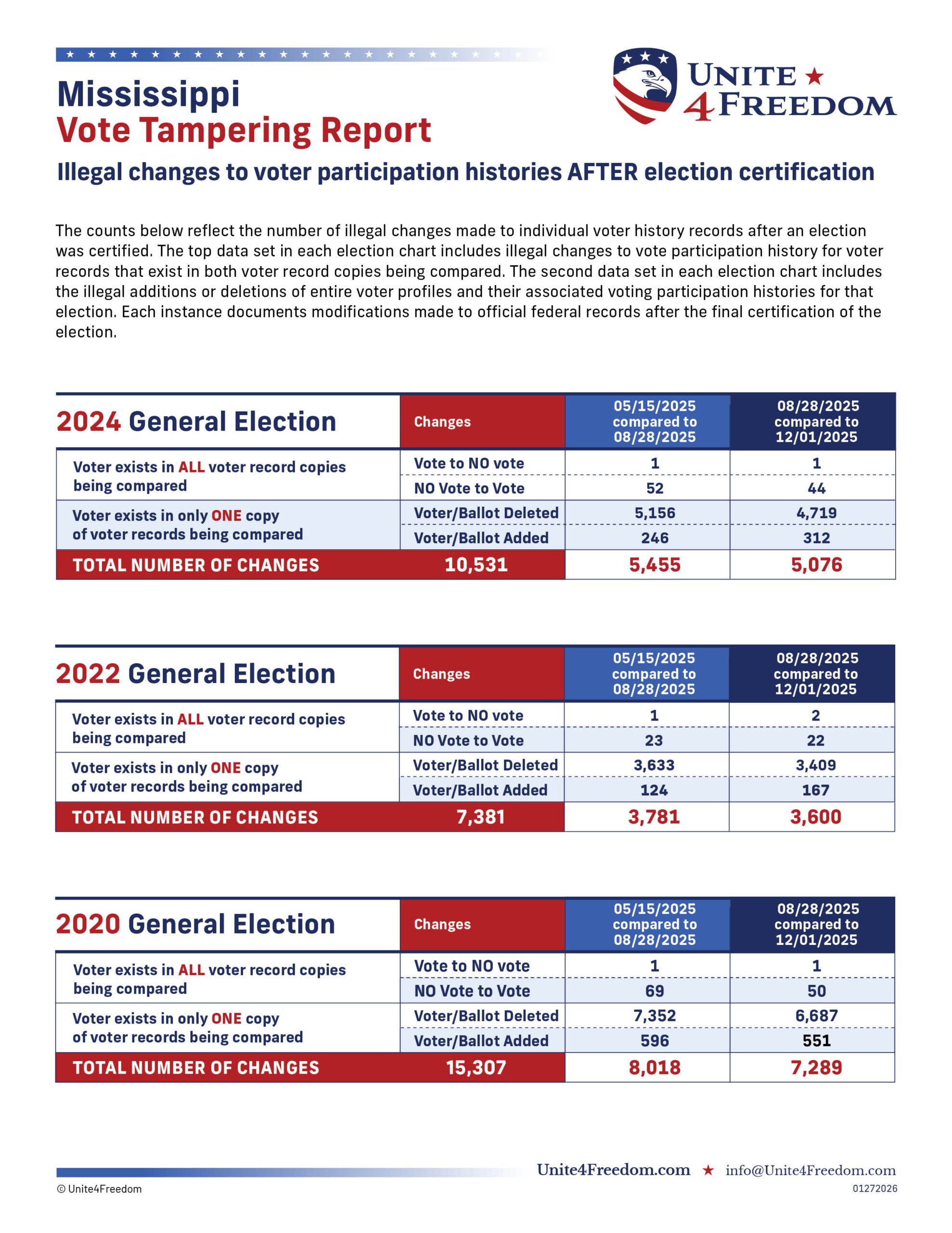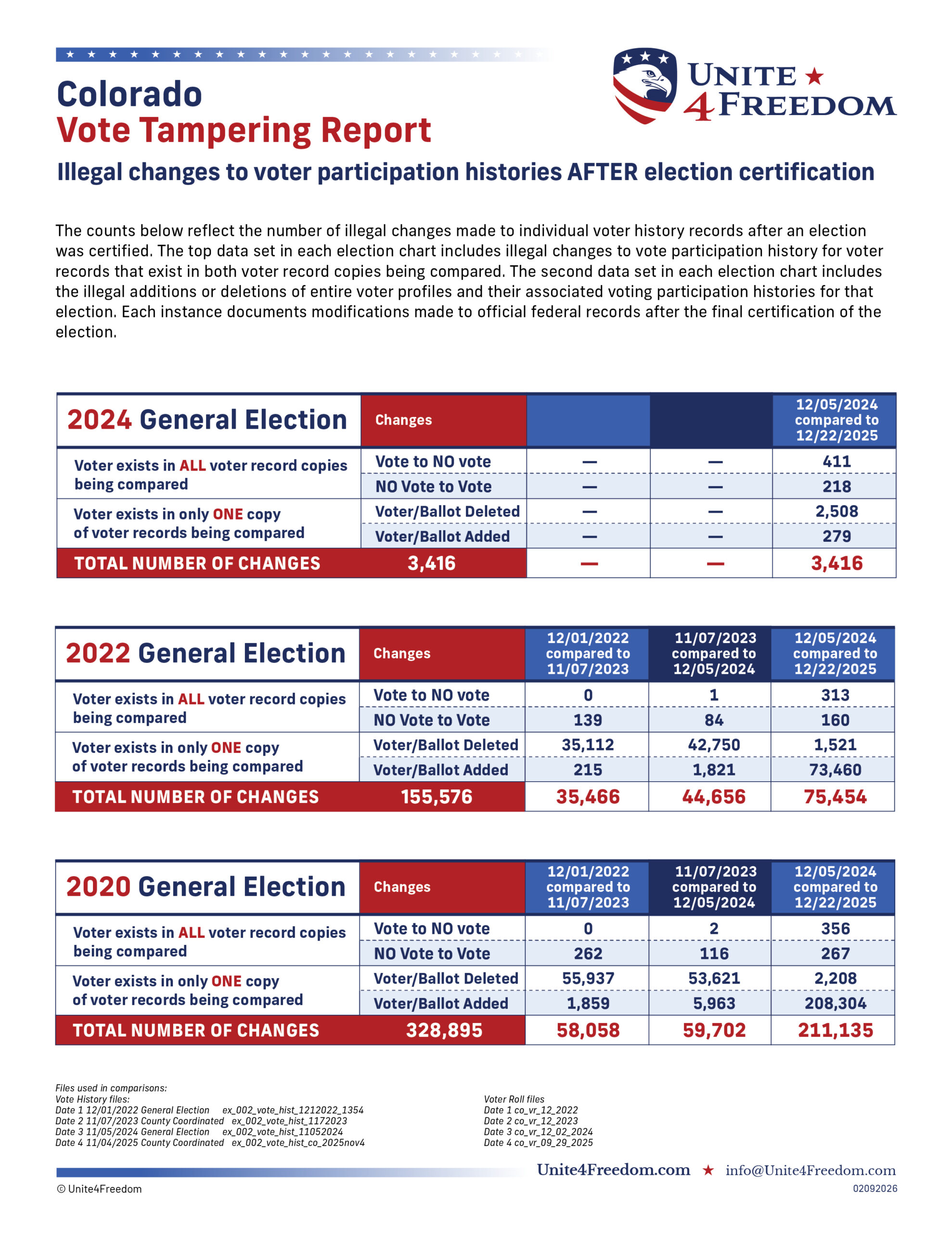 Our assumptions are either the election was not accurate when it was certified, meaning that the election official ILLEGALLY certified an election, or the illegal changes are an attempt to “wash away” evidence of malfeasance, like the vote to voter discrepancies found in our Election Validity Scorecards.